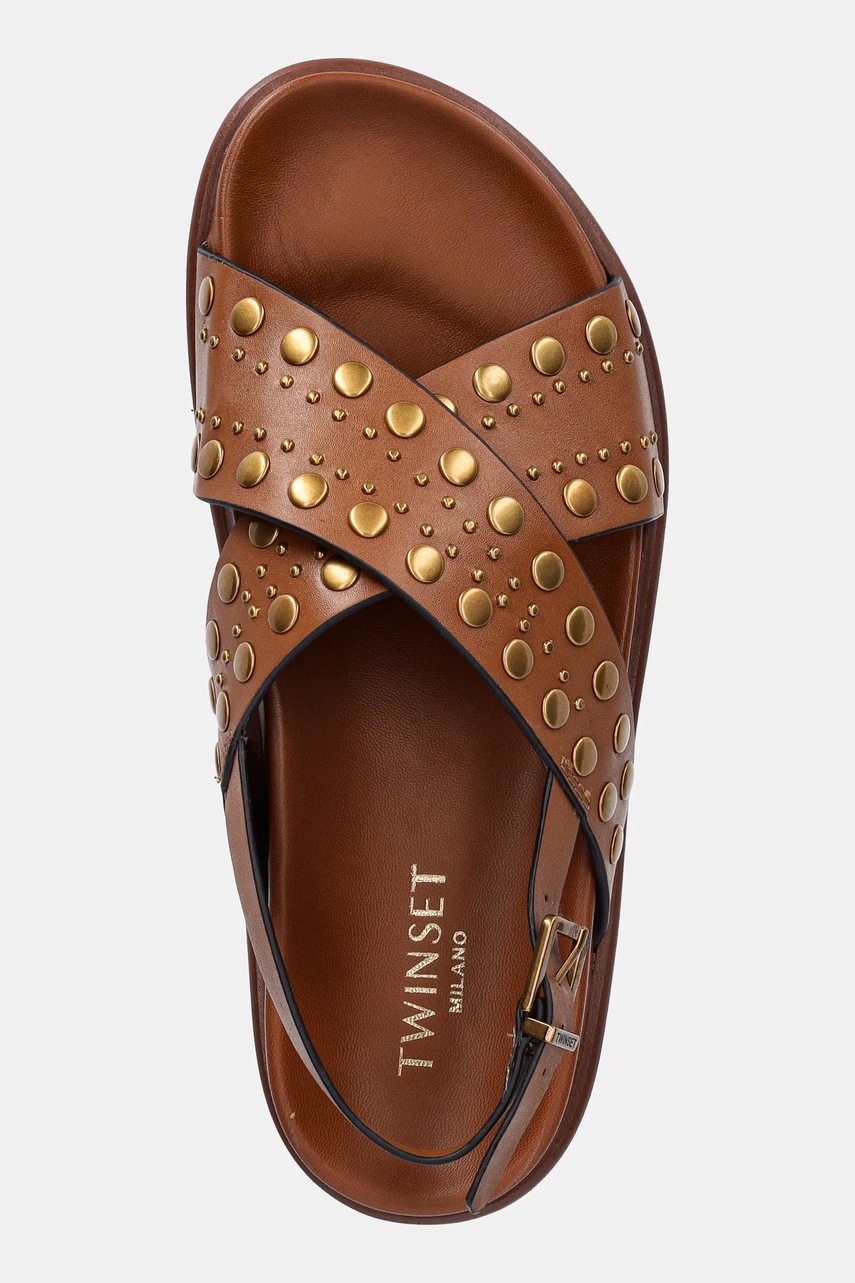 Twinset sandały skórzane damskie kolor brązowy 251TGT070