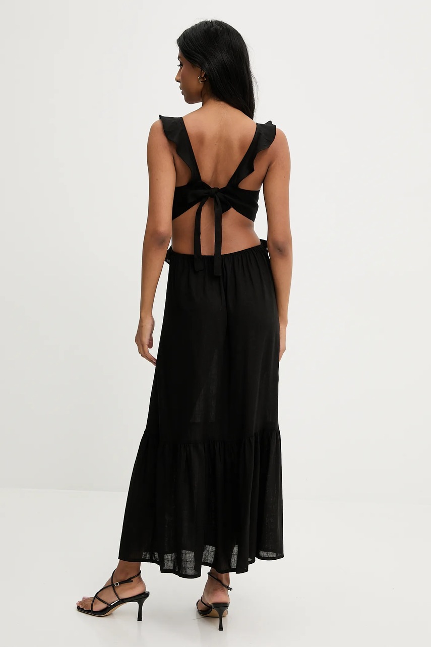 Answear.LAB sukienka z lnem kolor czarny maxi prosta