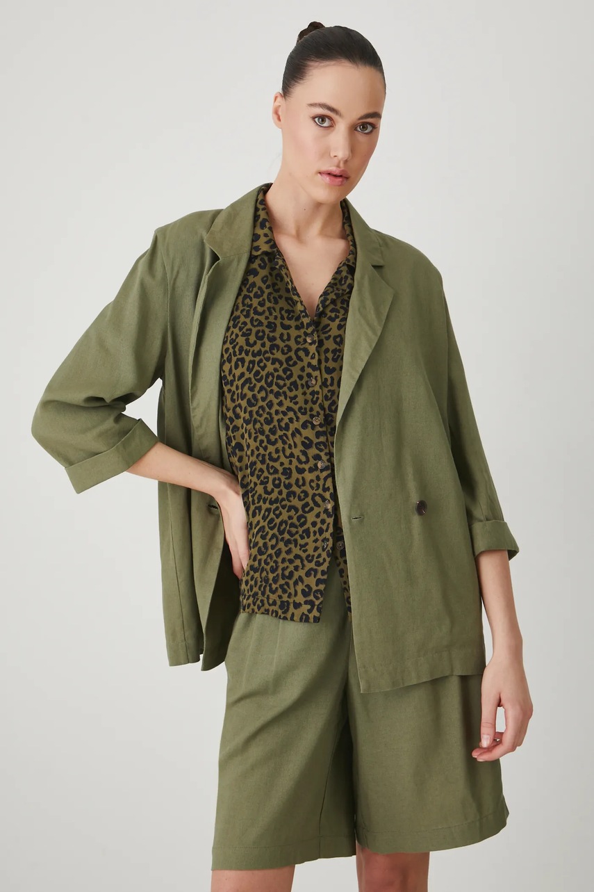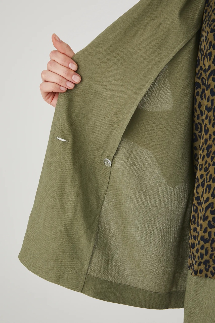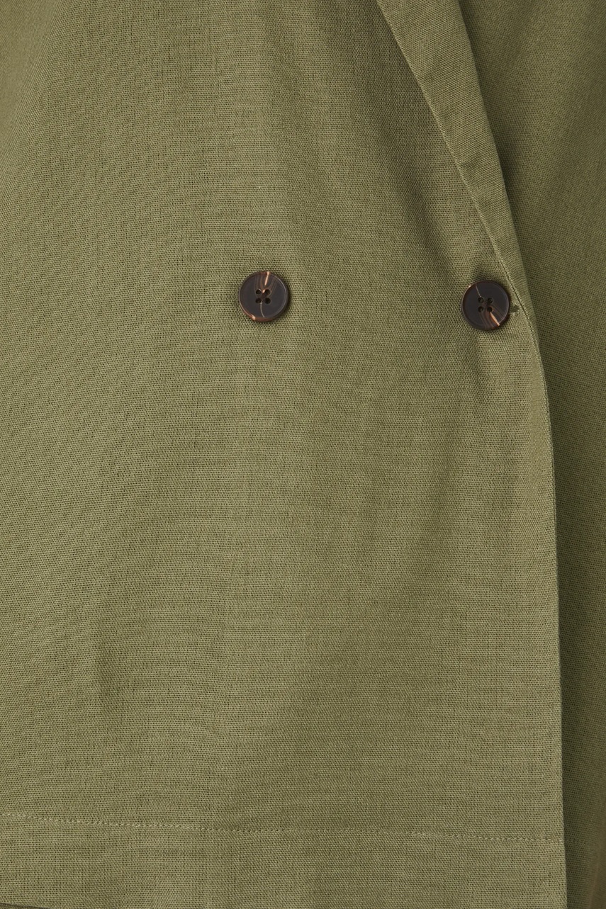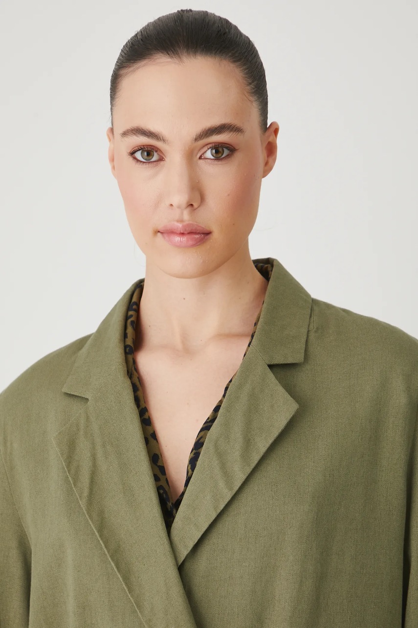 Medicine kimono z domieszką lnu damskie kolor zielony dwurzędowa gładka