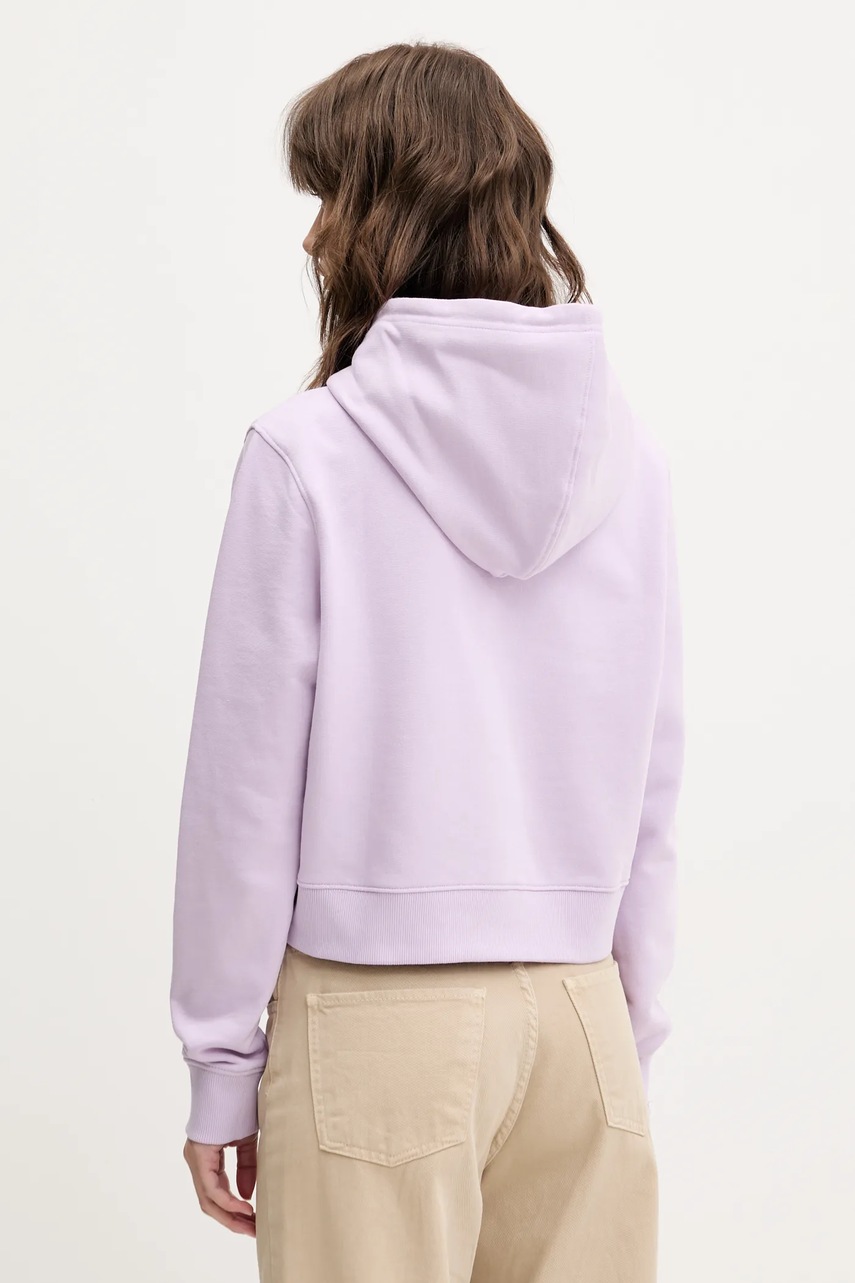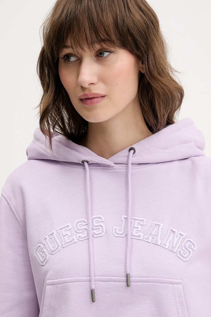 Guess Jeans bluza bawełniana damska kolor fioletowy z kapturem z aplikacją W5GQ22 K68I4