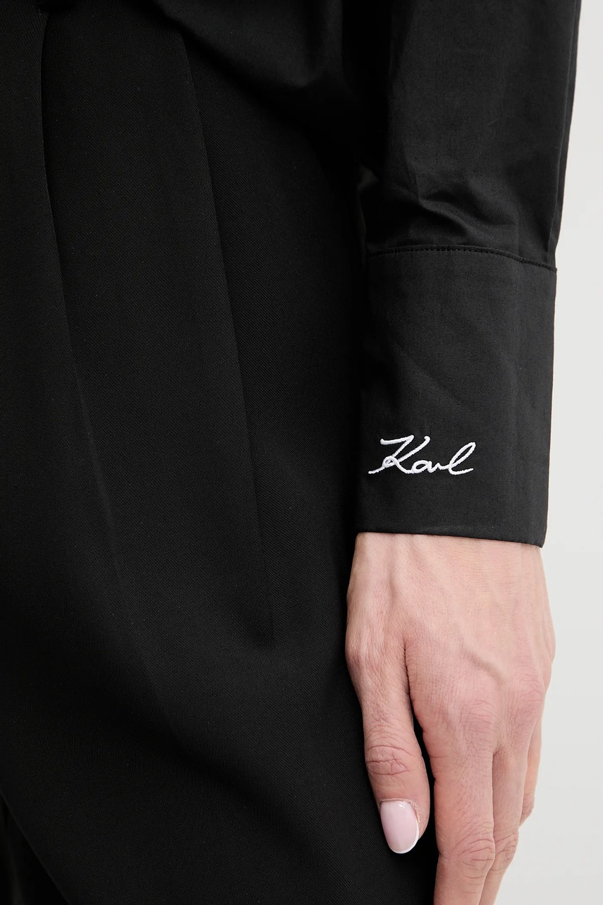 Karl Lagerfeld koszula bawełniana damska kolor czarny regular z kołnierzykiem klasycznym A2W11011