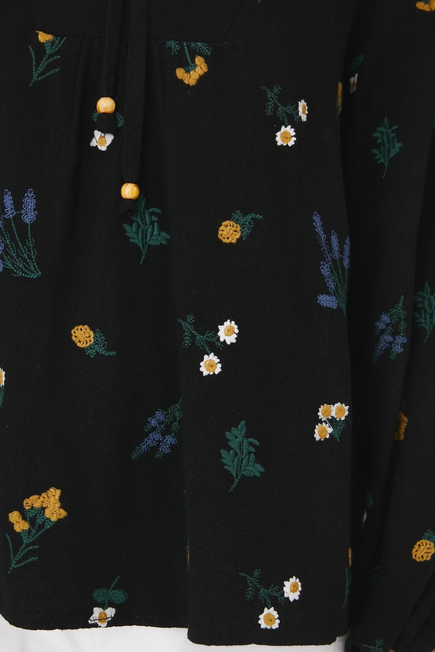 Medicine bluzka z domieszką lnu damska kolor czarny w kwiaty