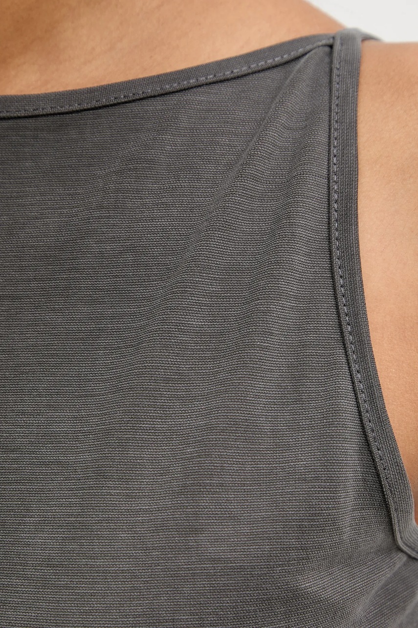 - Klasyczny, okrągły dekolt.