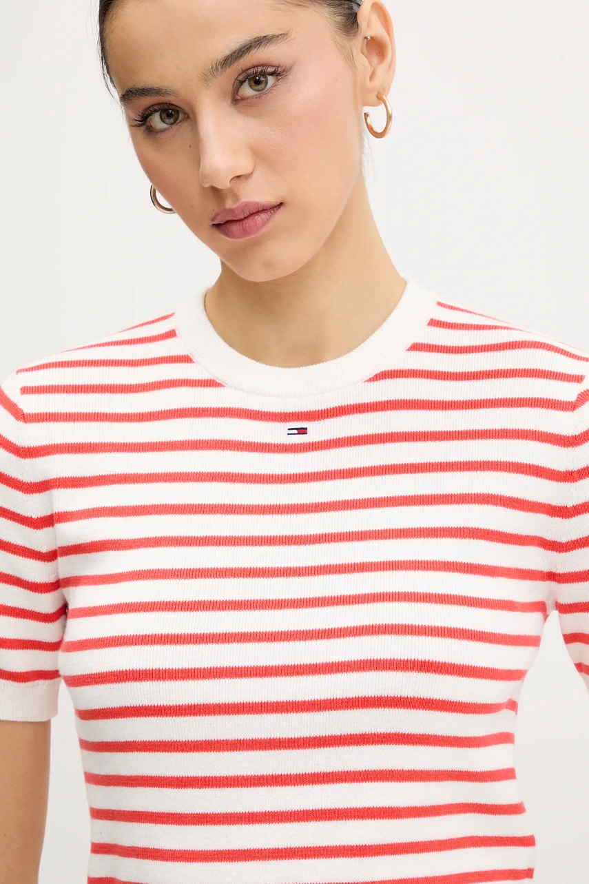 Tommy Jeans sweter bawełniany kolor czerwony lekki DW0DW19336