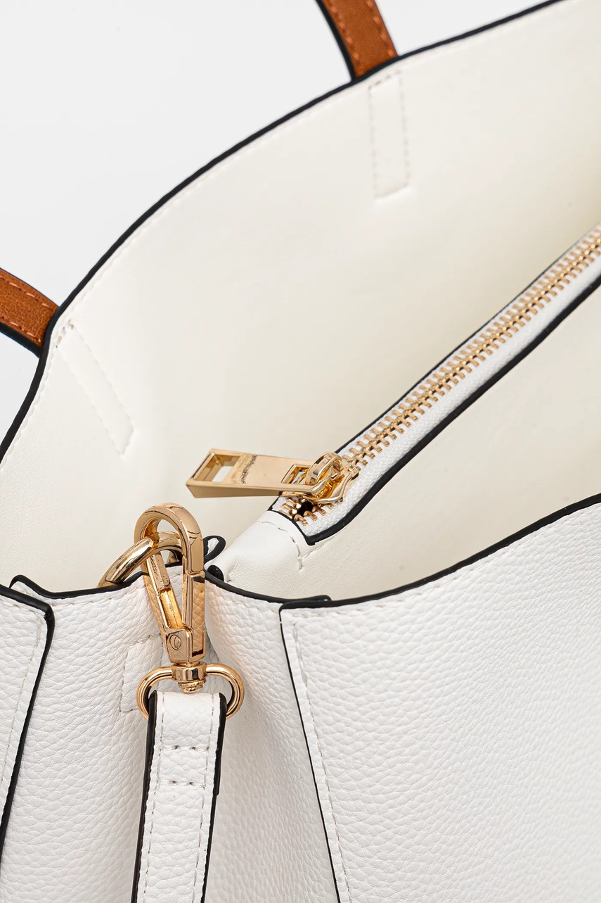 - Posiada trzy przegrody: dwie otwarte i jedną zapinaną na suwak.