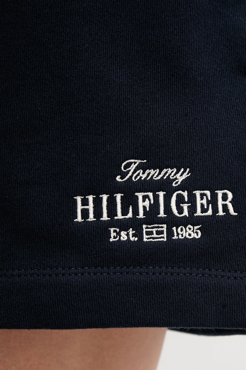 Tommy Hilfiger szorty bawełniane damskie kolor granatowy z aplikacją high waist WW0WW45518