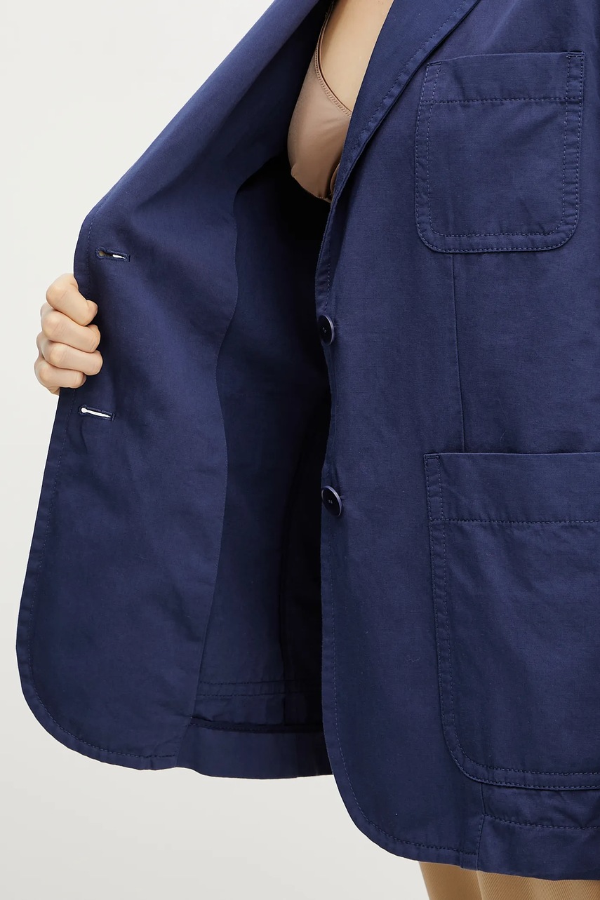- Jednorzędowe zapięcie na guziki.