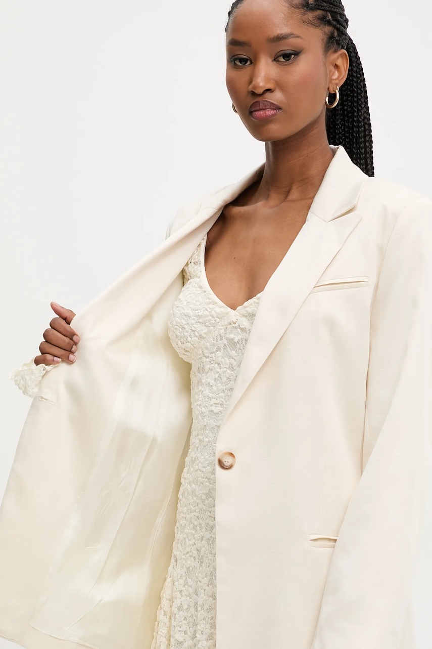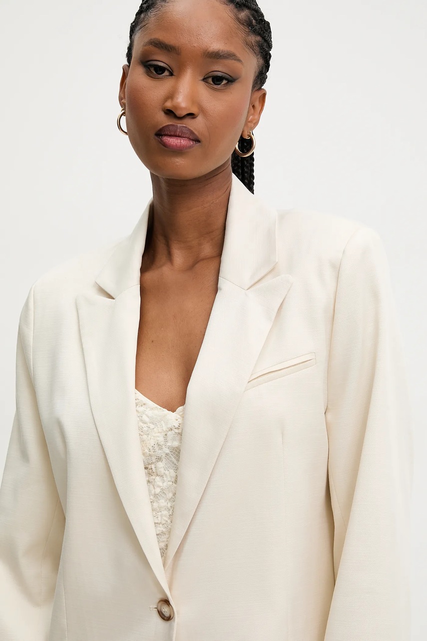 Answear.LAB marynarka kolor beżowy jednorzędowa gładka