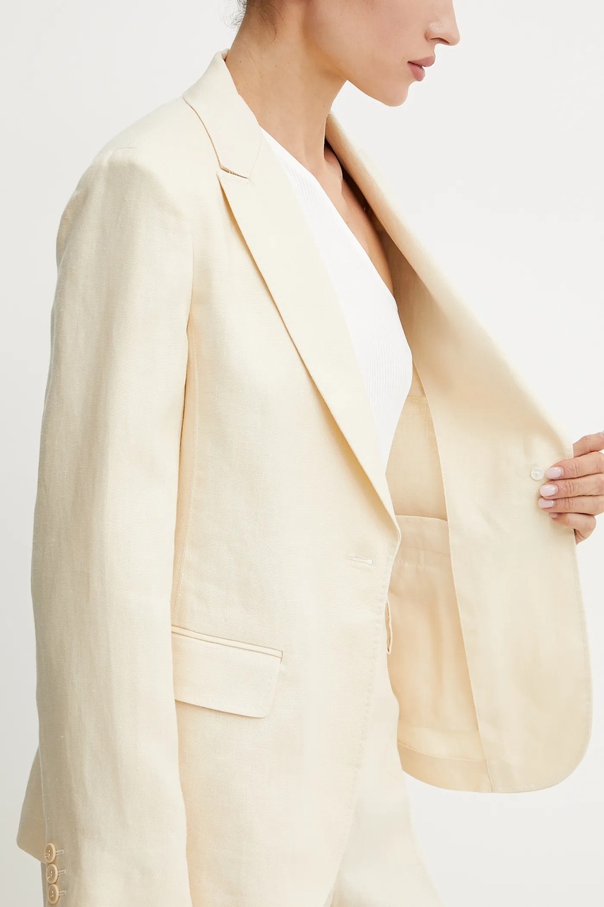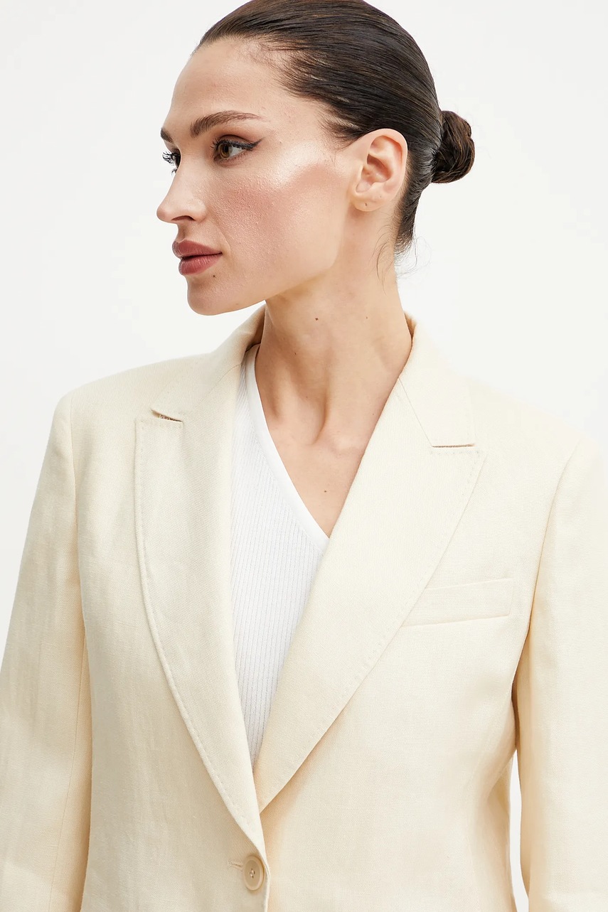Weekend Max Mara marynarka lniana kolor beżowy jednorzędowa gładka 2515041012600
