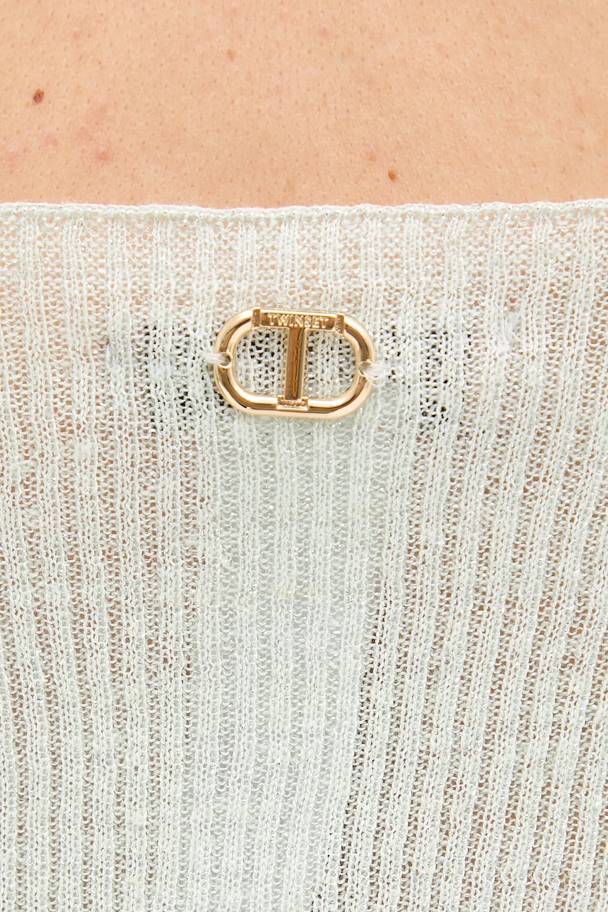 Twinset top z domieszką lnu damska kolor niebieski gładka 251TT3147