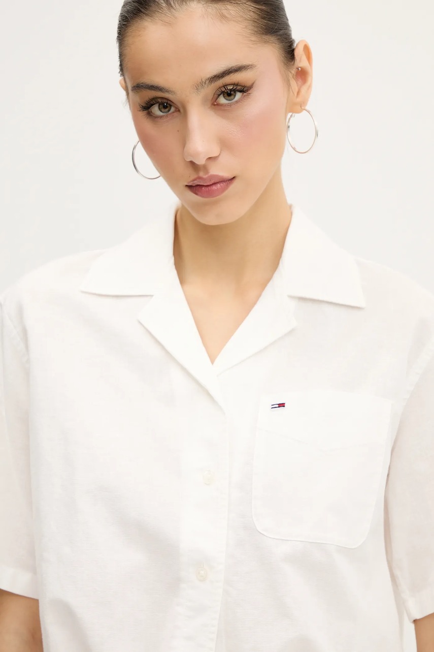 Tommy Jeans koszula z domieszką lnu damska kolor biały relaxed z kołnierzykiem klasycznym DW0DW20286