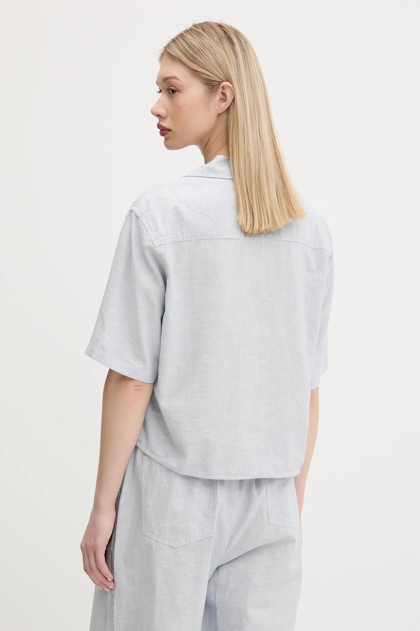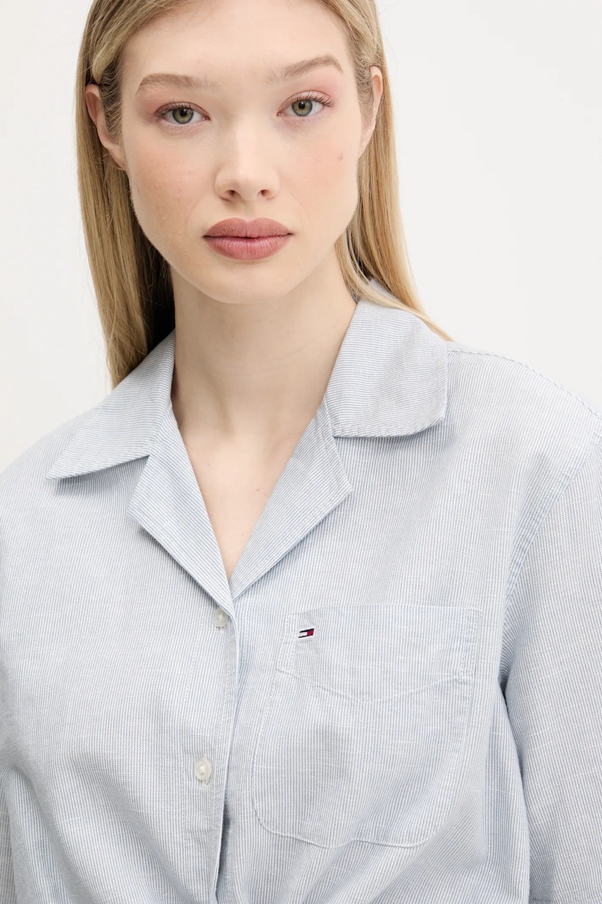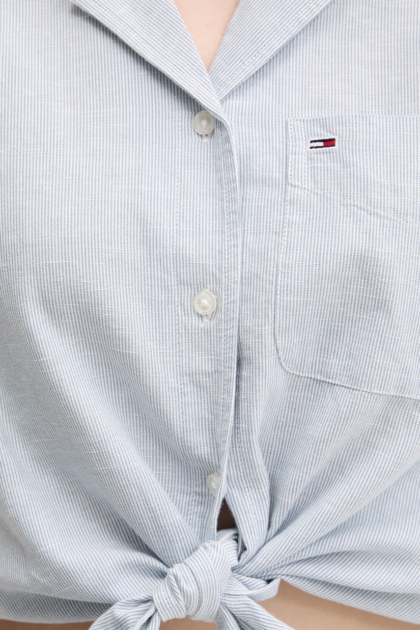 Tommy Jeans koszula z domieszką lnu damska kolor niebieski relaxed z kołnierzykiem klasycznym DW0DW20286