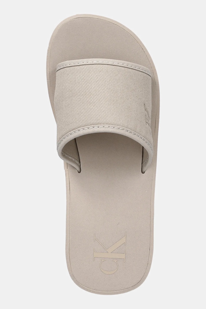Calvin Klein Jeans klapki BEACH WEDGE SLIDE CANVAS damskie kolor beżowy na koturnie YW0YW01725
