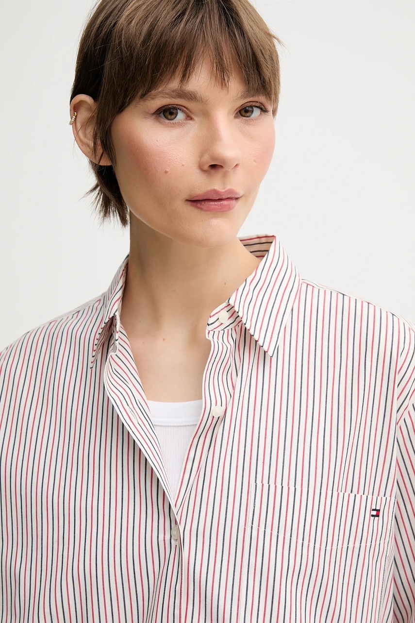 Tommy Hilfiger koszula bawełniana damska kolor bordowy regular z kołnierzykiem klasycznym