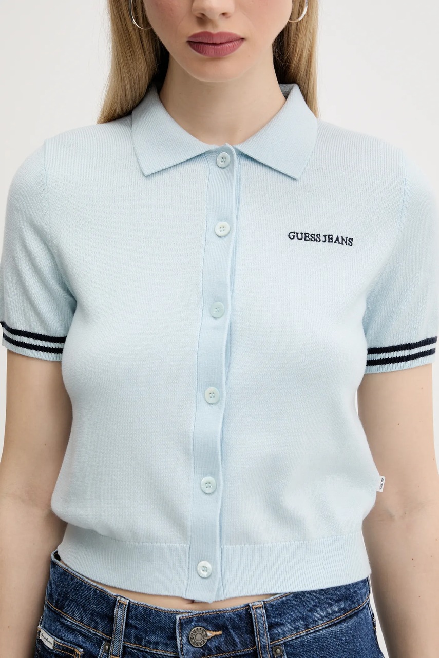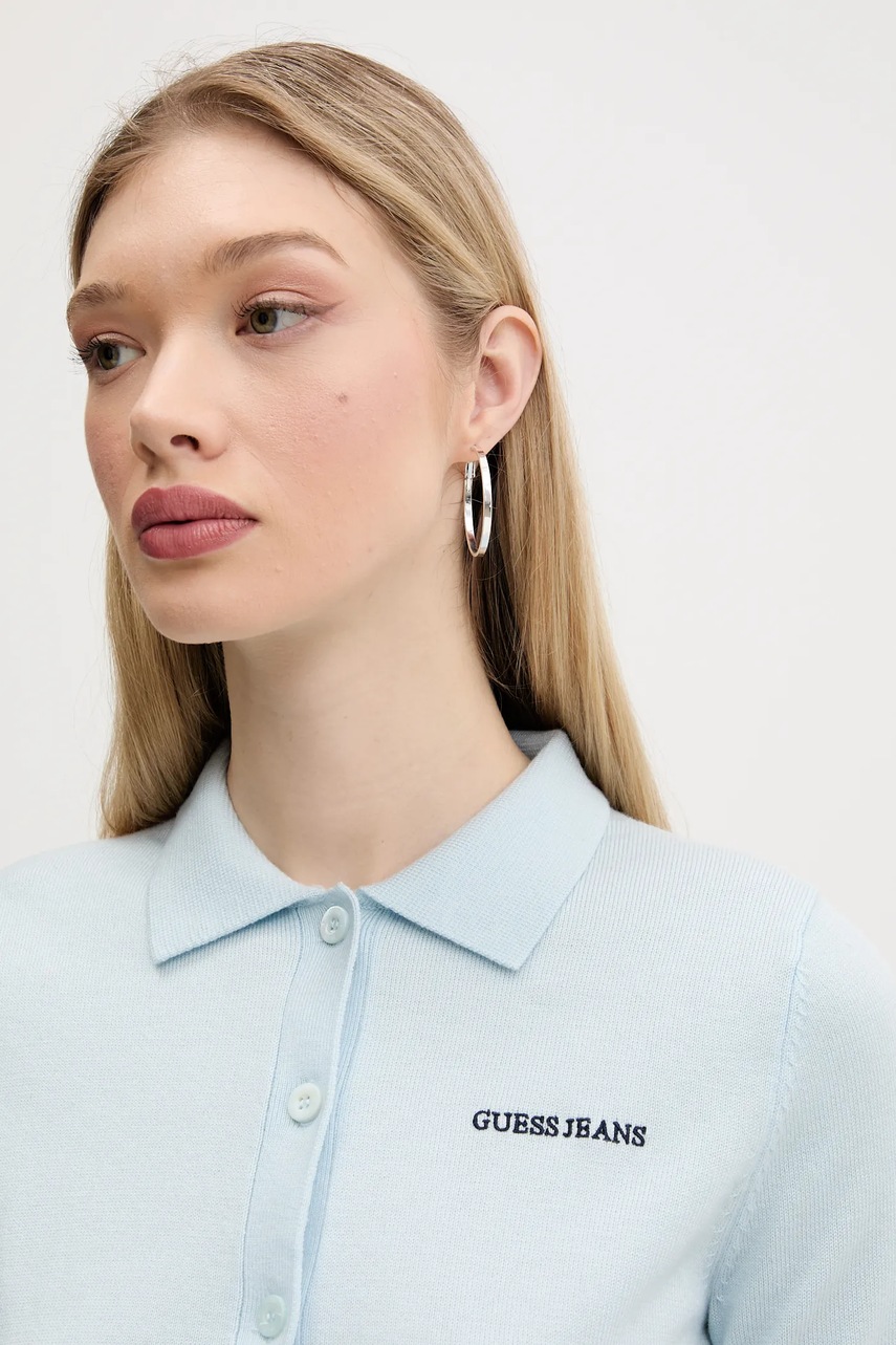 Guess Jeans polo z domieszką wełny damski kolor niebieski W5GR03 Z3HO2