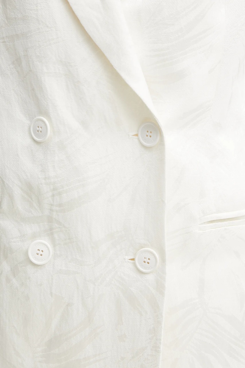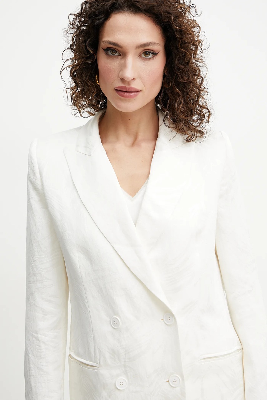 Twinset marynarka z domieszką lnu kolor beżowy dwurzędowa wzorzysta 251TT2175