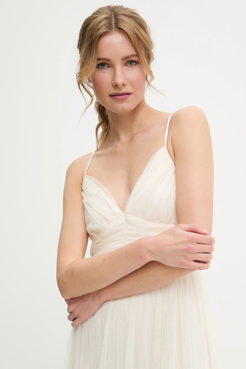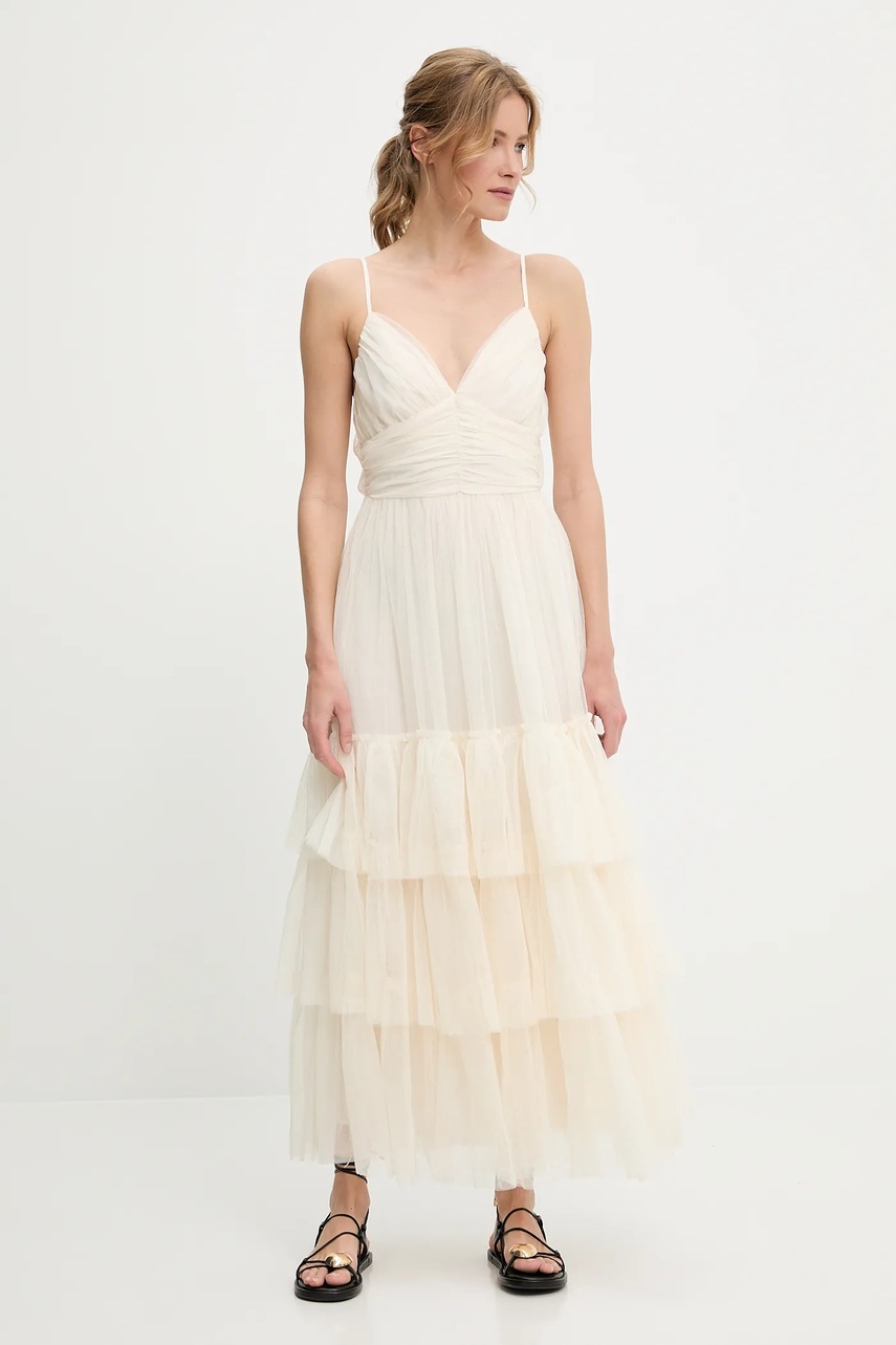 Answear.LAB sukienka kolor beżowy maxi rozkloszowana