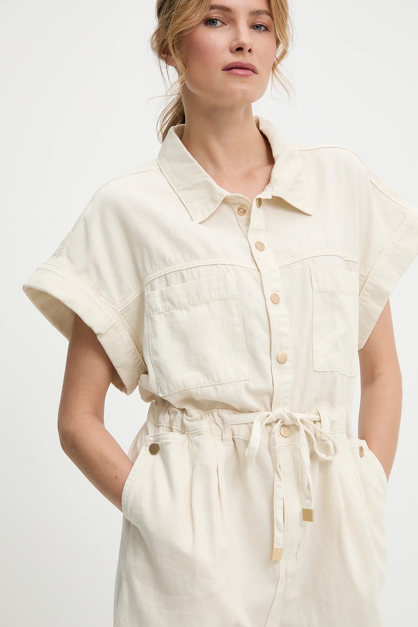 Answear.LAB kombinezon jeansowy kolor beżowy bawełniany z kołnierzykiemm