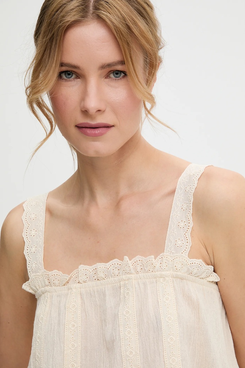 - Górna krawędź wykończona elastyczną listwą zapobiega zsuwaniu się bluzki.