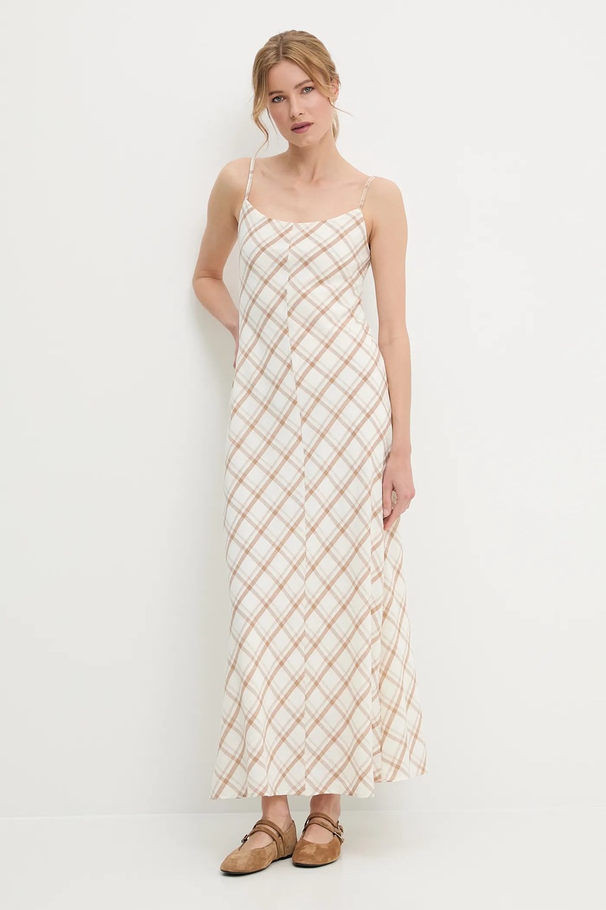 Answear.LAB sukienka bawełniana kolor beżowy maxi rozkloszowana