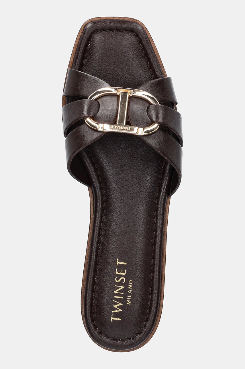Twinset klapki skórzane damskie kolor brązowy 251TGT090