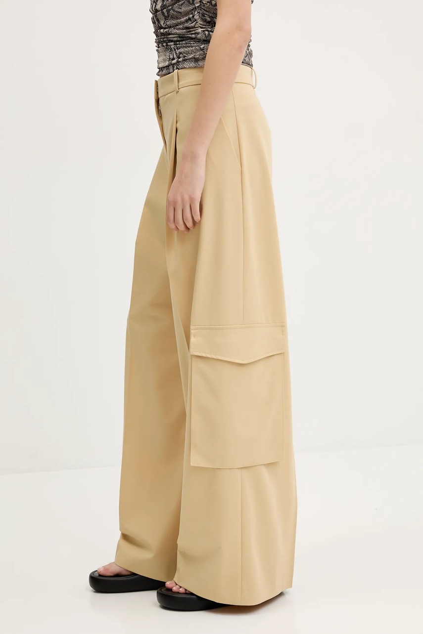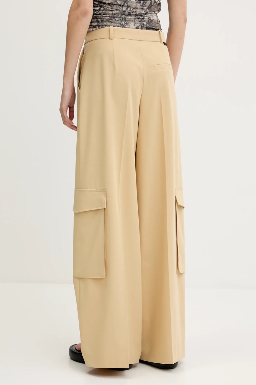 HUGO spodnie damskie kolor beżowy szerokie high waist 50538656