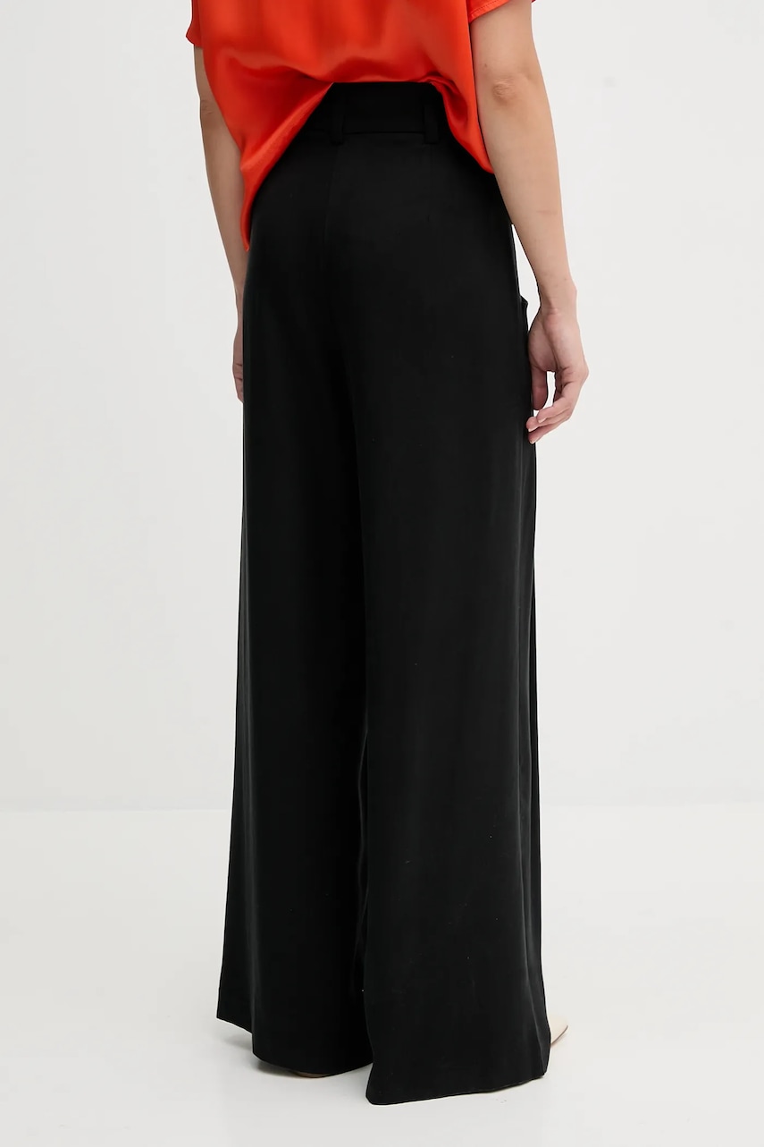 Sisley spodnie damskie kolor czarny szerokie high waist 4V7PLF06N
