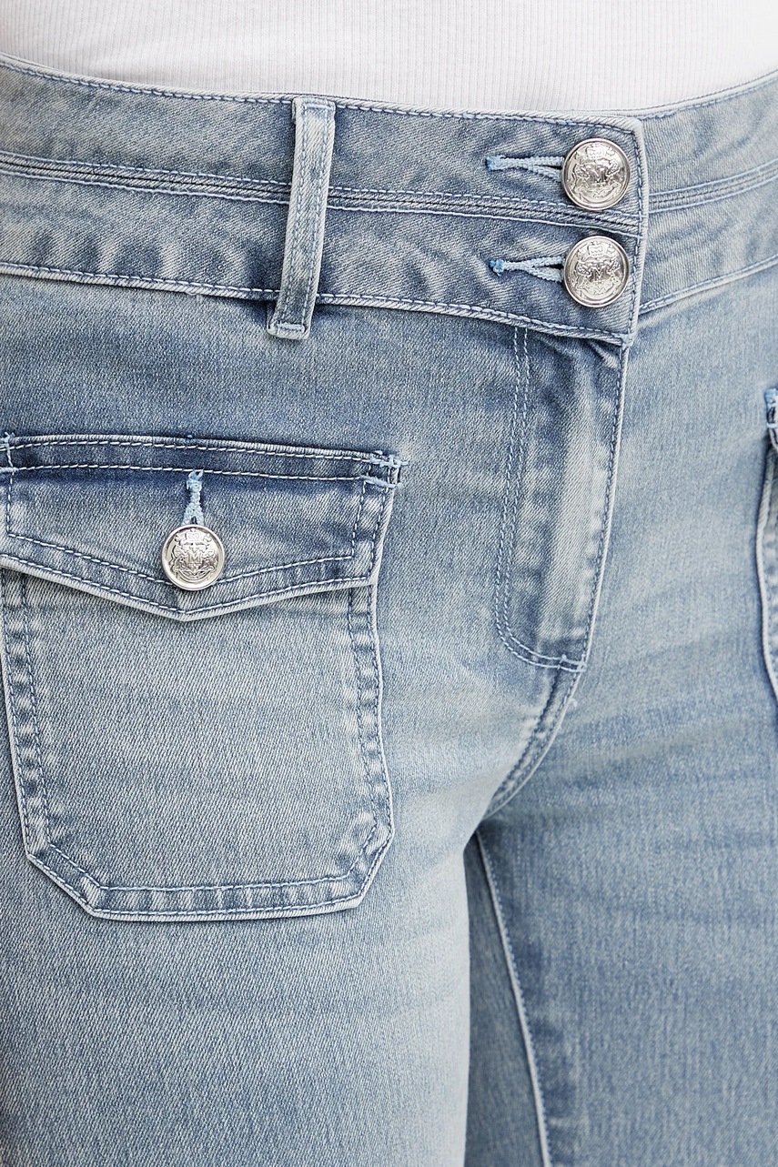 - Model z podwyższoną talią i zapięciem na suwak i guziki.
