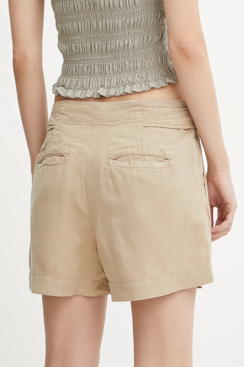 Guess szorty z domieszką lnu SHAYE damskie kolor zielony gładkie high waist W5GD1J WG8N0