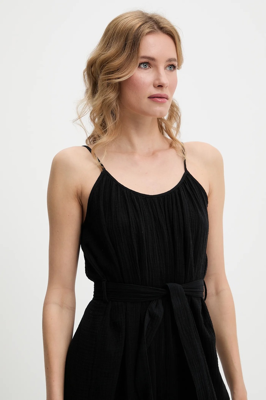 Answear.LAB kombinezon bawełniany kolor czarny bawełniany z dekoltem okrągłym