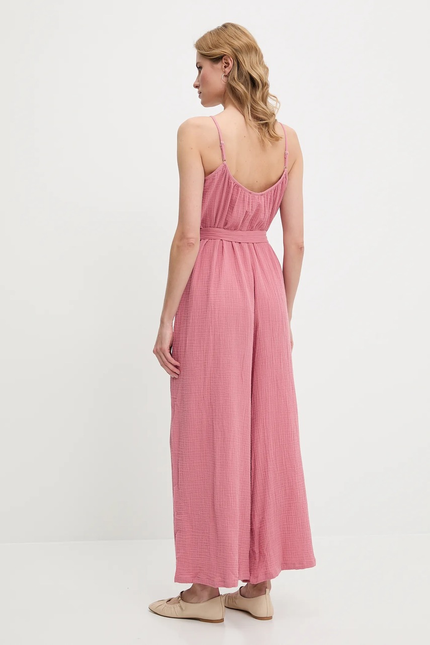 Answear.LAB kombinezon bawełniany kolor różowy bawełniany z dekoltem okrągłym