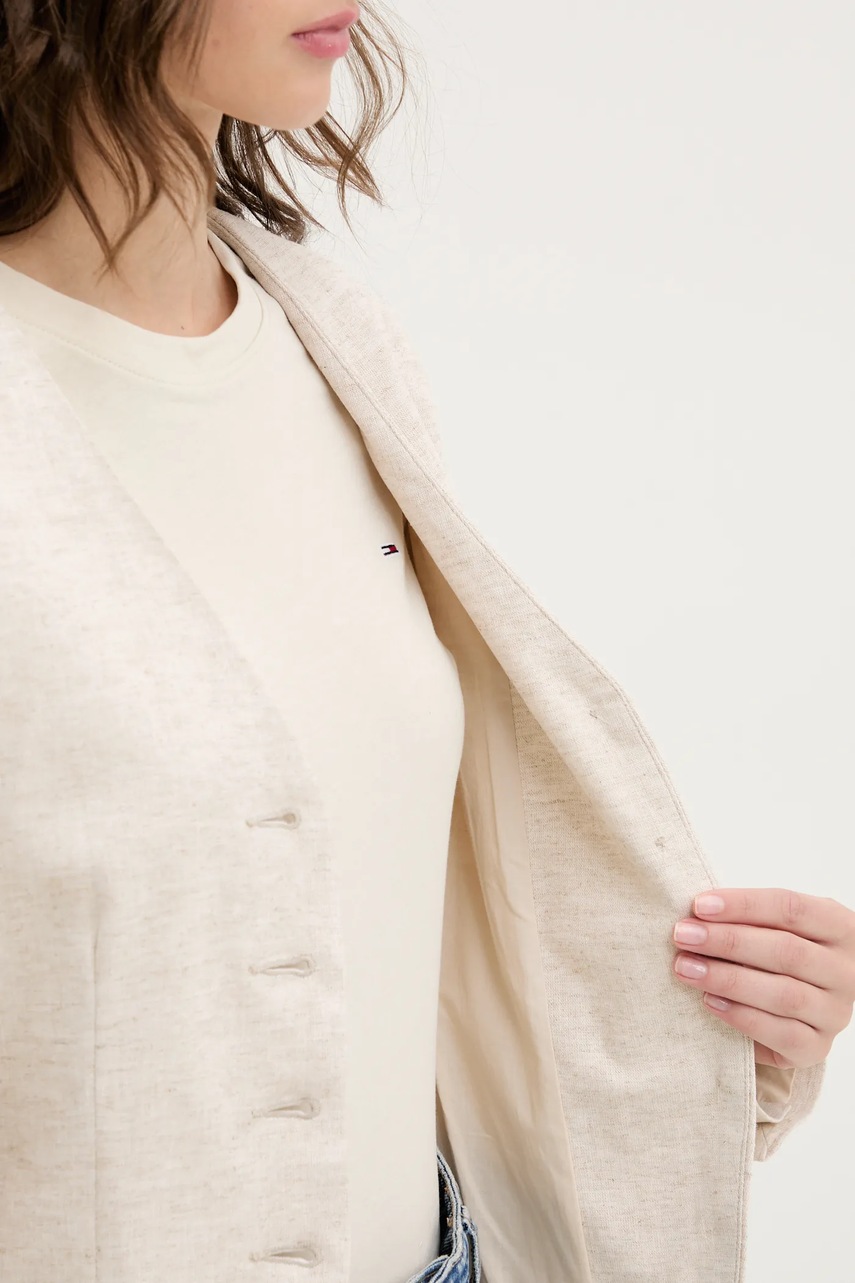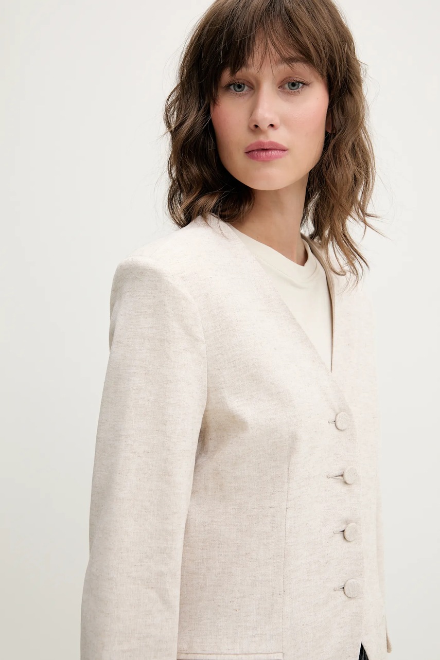 Abercrombie & Fitch marynarka lniana kolor beżowy jednorzędowa gładka KI144-5076