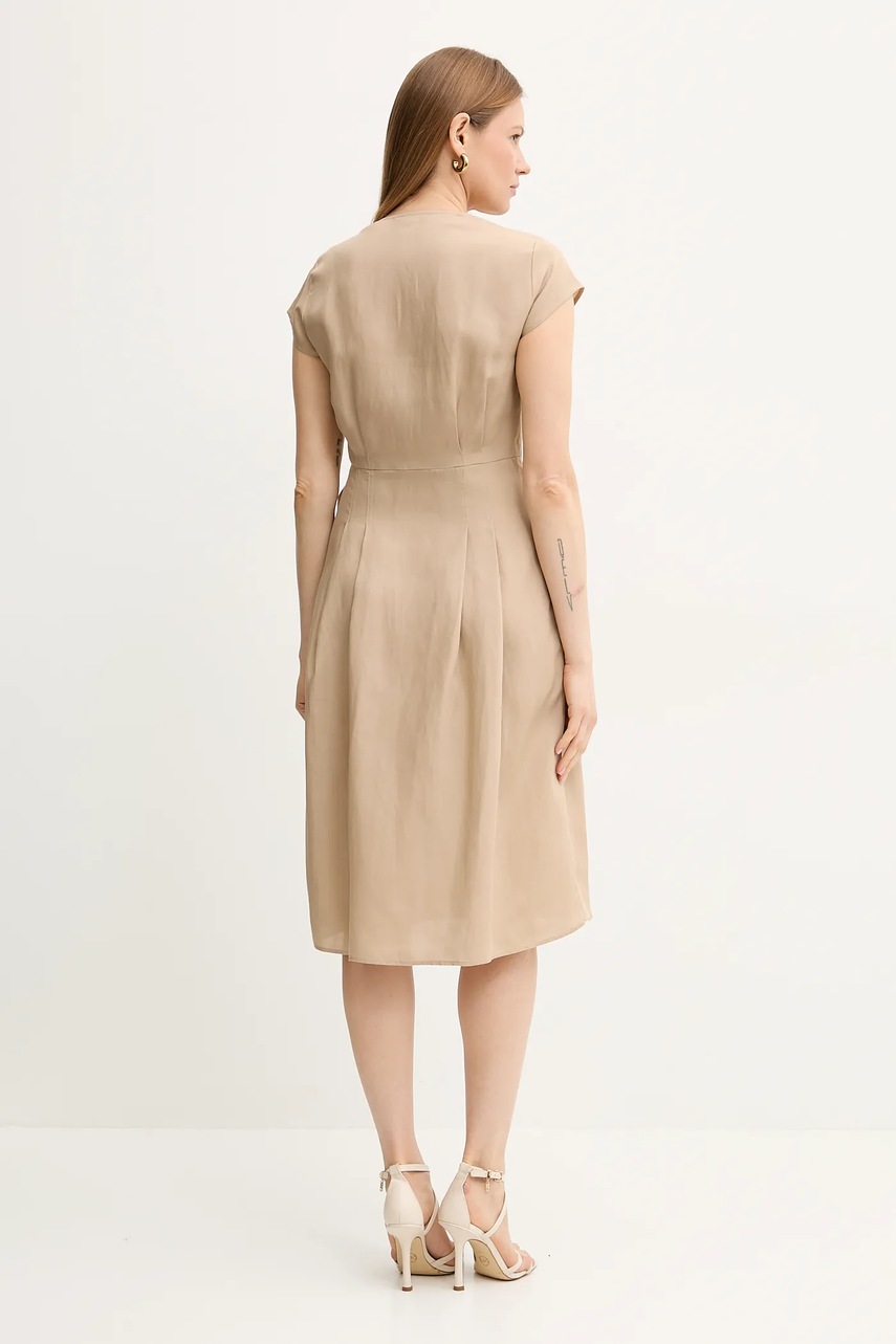 Twinset sukienka z domieszką lnu kolor beżowy mini rozkloszowana 251TT2072