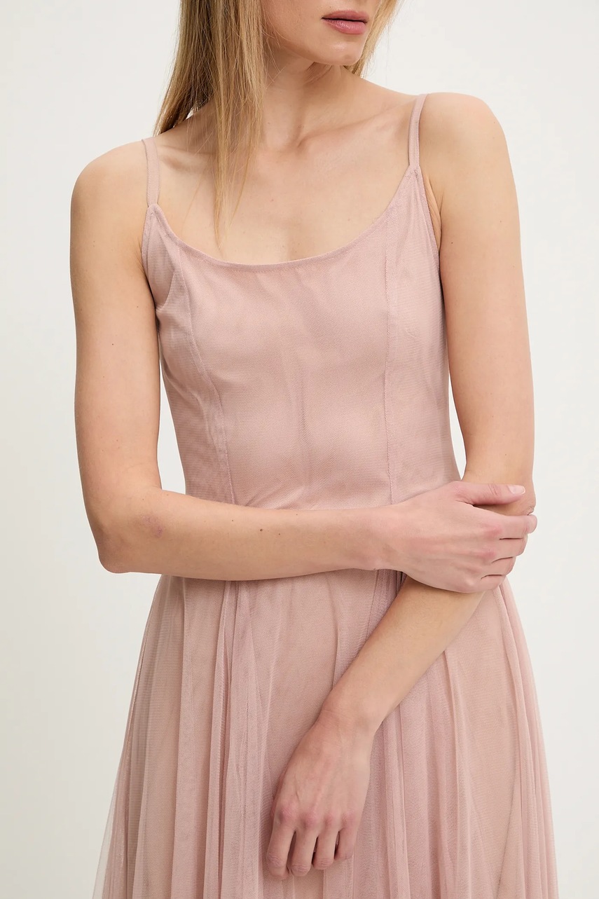 Answear.LAB sukienka kolor beżowy maxi rozkloszowana