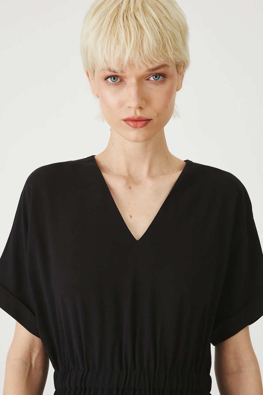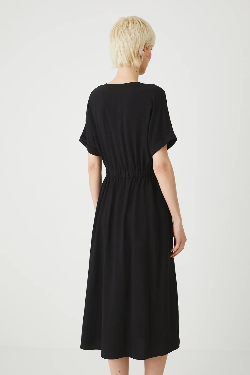 Medicine sukienka z domieszką lnu kolor czarny midi dopasowana