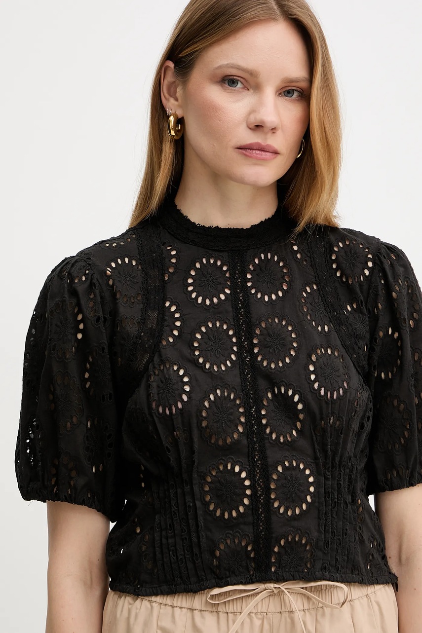 Twinset bluzka bawełniana damska kolor czarny wzorzysta 251TT2366