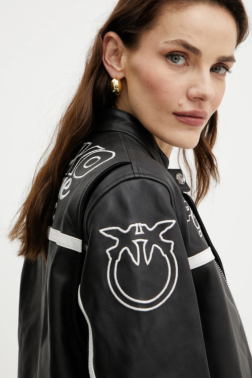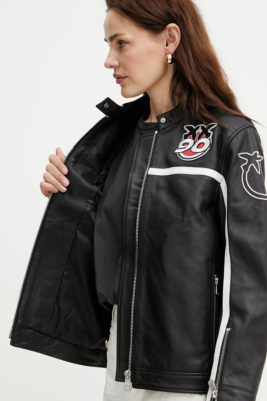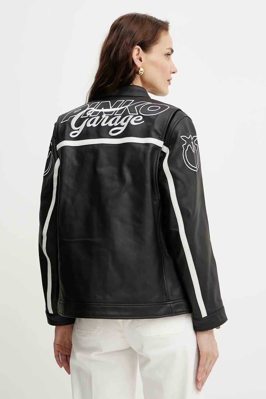 Pinko kurtka skórzana kolor czarny przejściowa 105296 A2N5