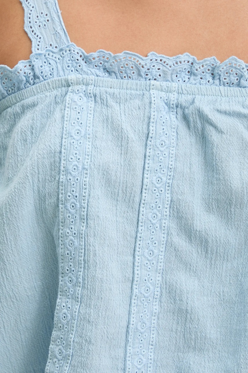 - Górna krawędź wykończona elastyczną listwą zapobiega zsuwaniu się bluzki.