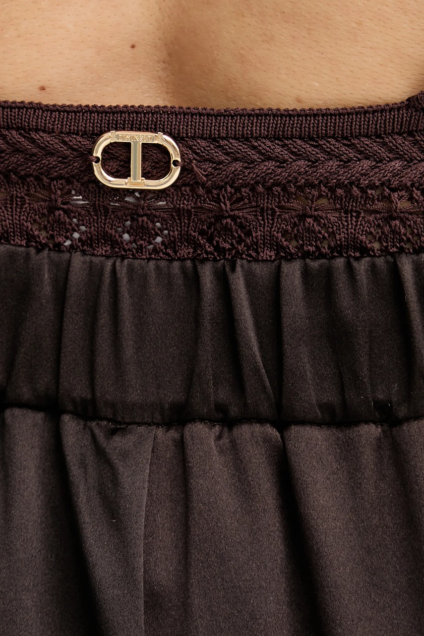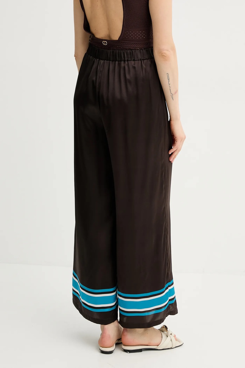 Luisa Spagnoli spodnie jedwabne damskie kolor brązowy szerokie high waist 542106
