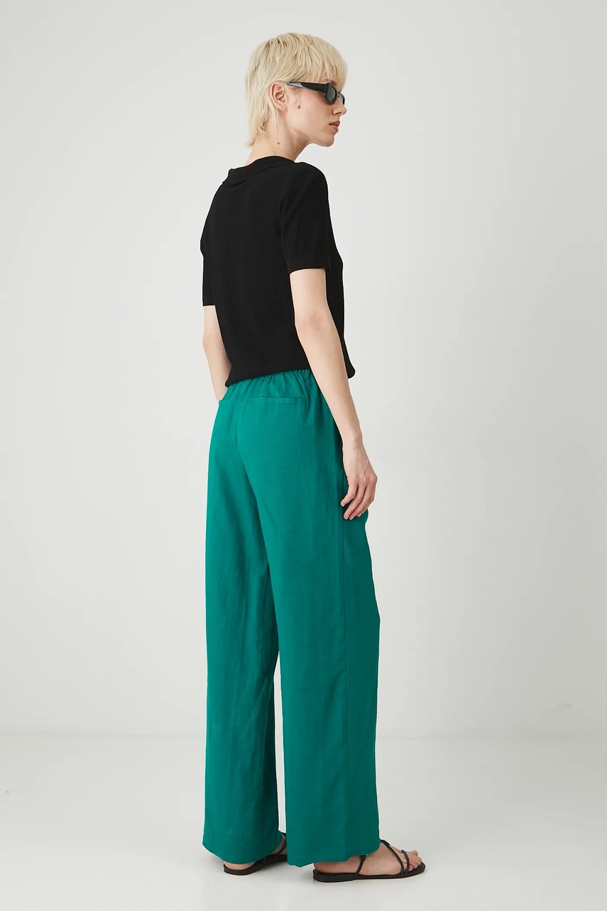 Medicine spodnie lniane damskie kolor zielony szerokie medium waist