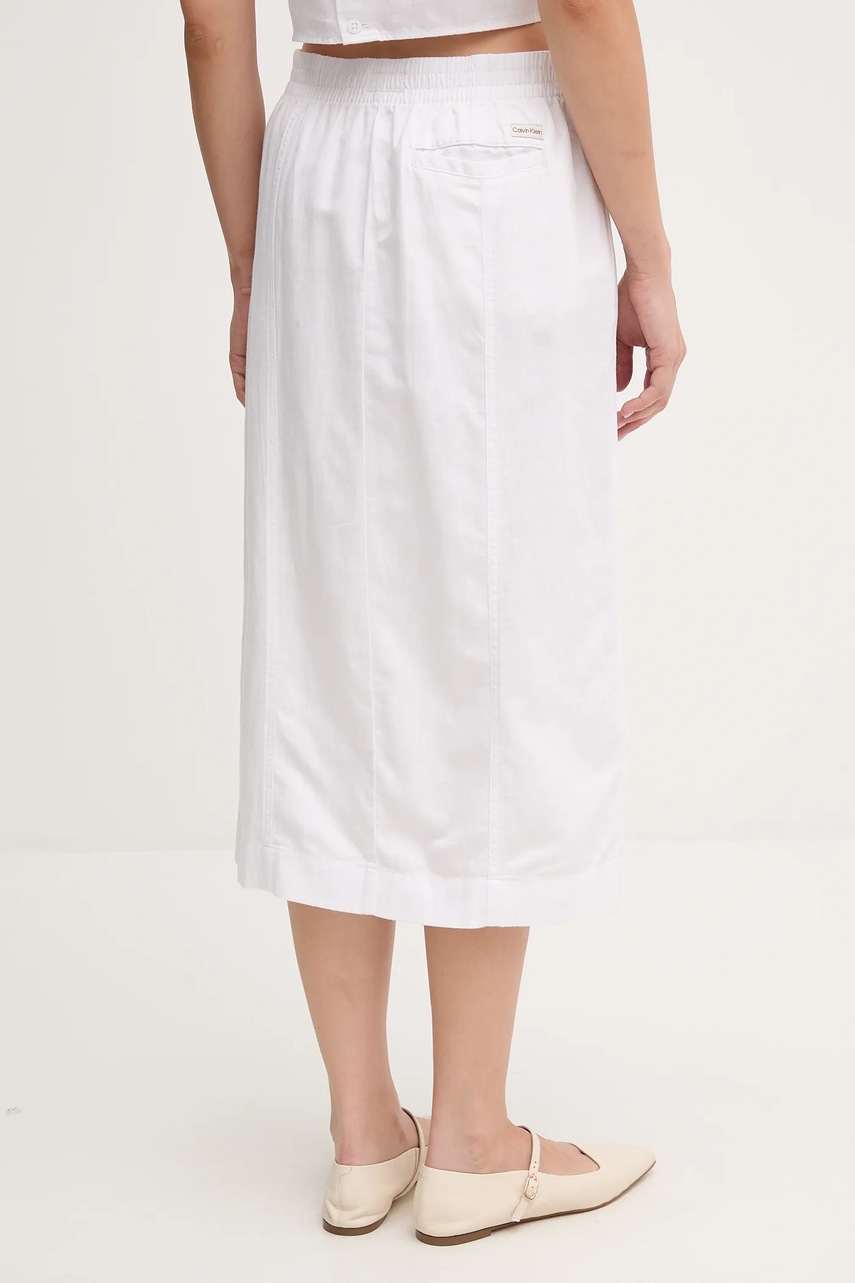 Calvin Klein Jeans spódnica z domieszką lnu kolor biały midi prosta J20J225327
