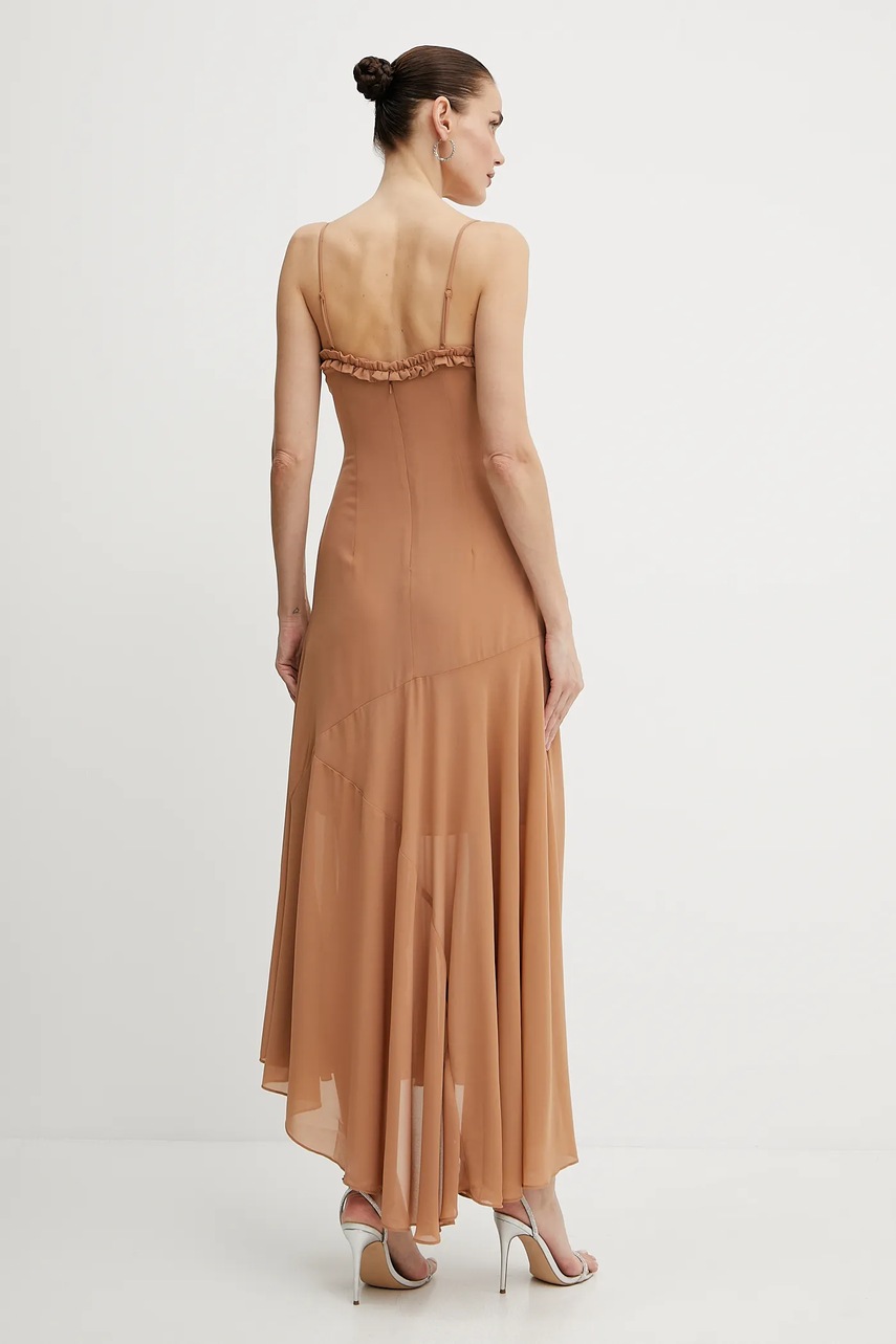 Bardot sukienka kolor brązowy midi rozkloszowana 59885DB