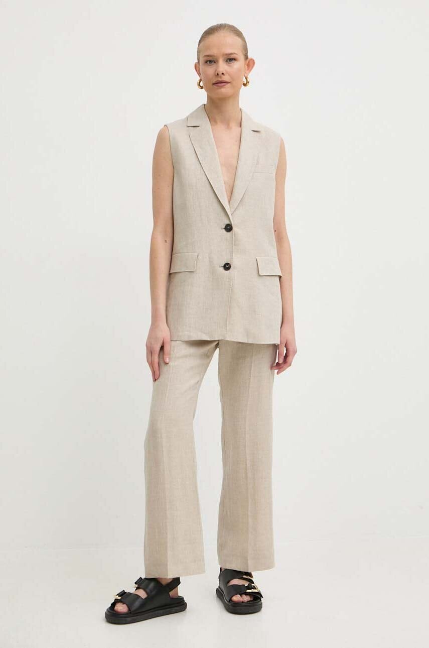 Marella kamizelka lniana kolor beżowy jednorzędowa 2413281022200