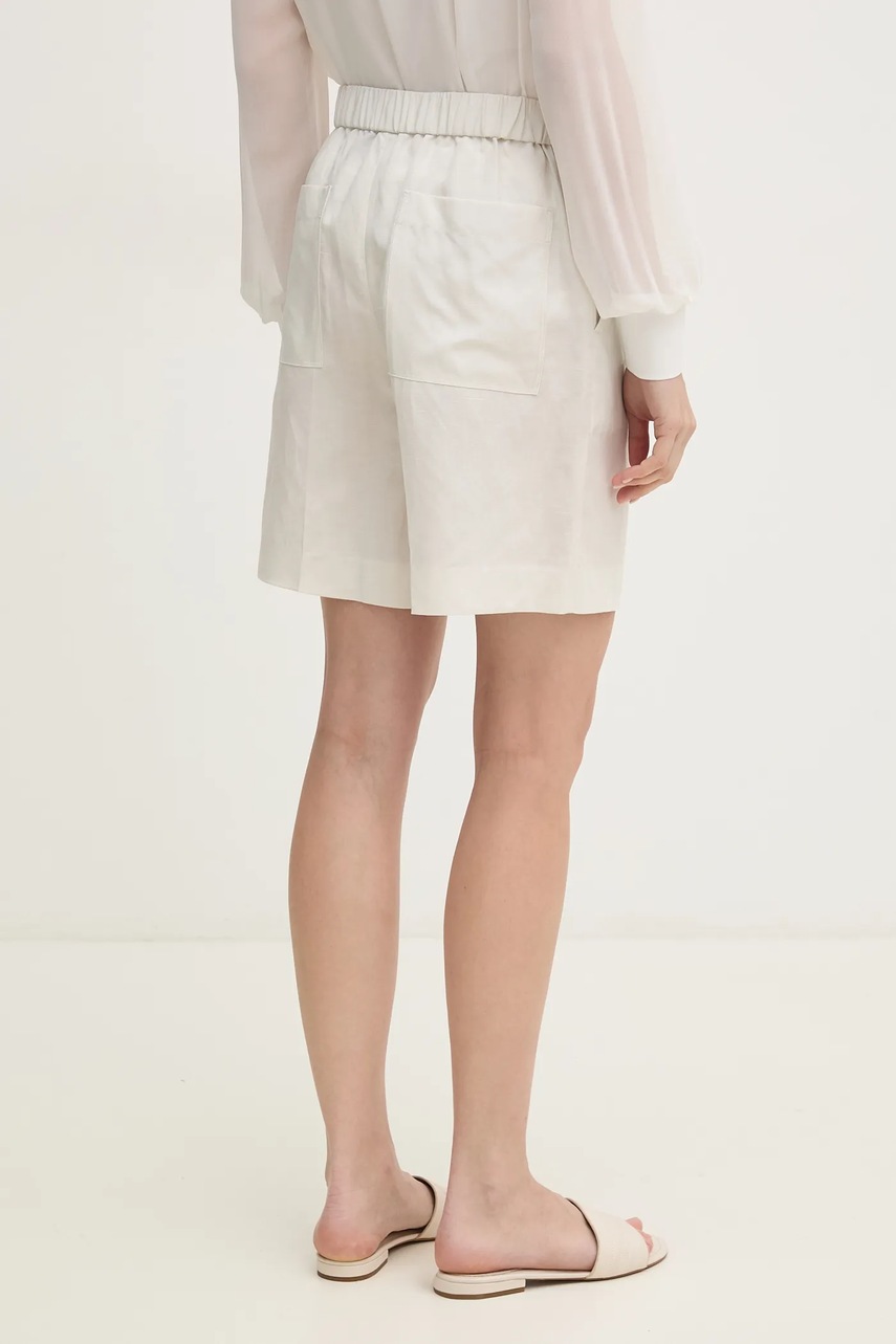 Calvin Klein szorty z domieszką lnu kolor beżowy high waist K20K208380