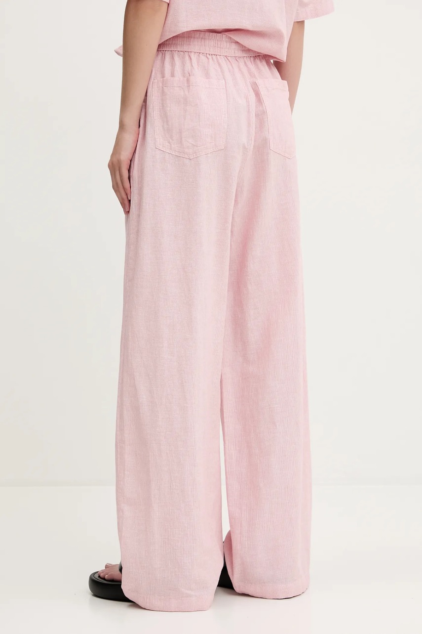 Tommy Jeans spodnie z domieszką lnu damskie kolor różowy szerokie high waist DW0DW20352