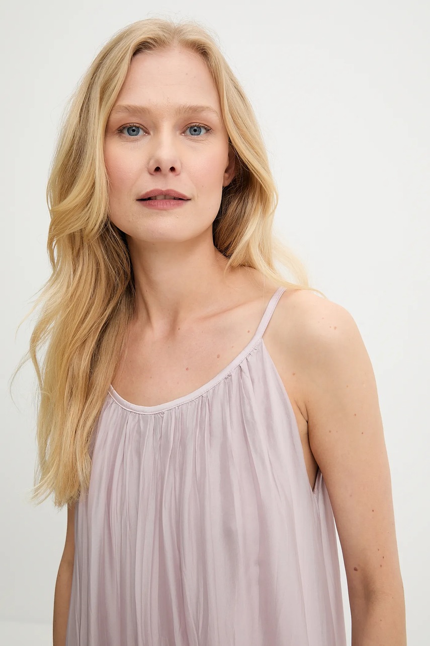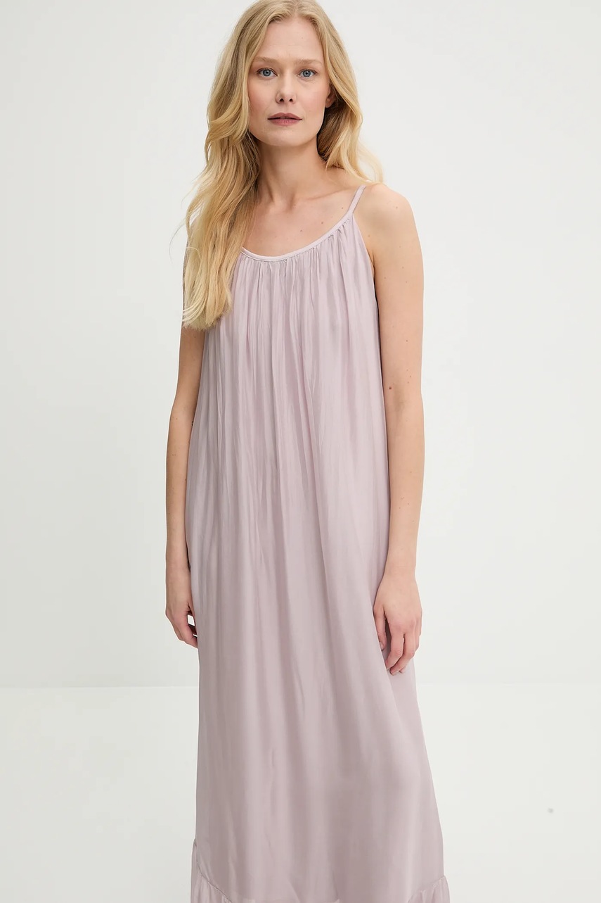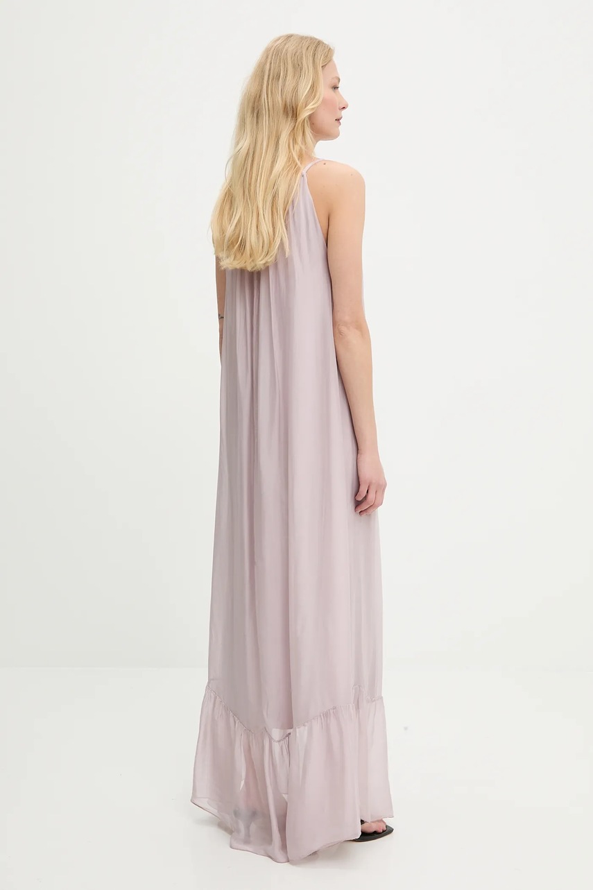 Answear.LAB sukienka z jedwabiem kolor fioletowy maxi rozkloszowana