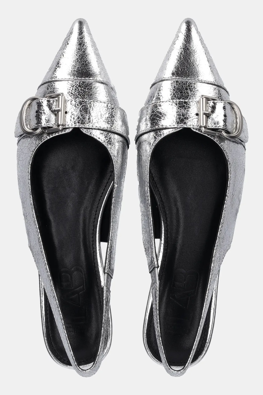 Answear.LAB baleriny skórzane kolor srebrny z odkrytą piętą