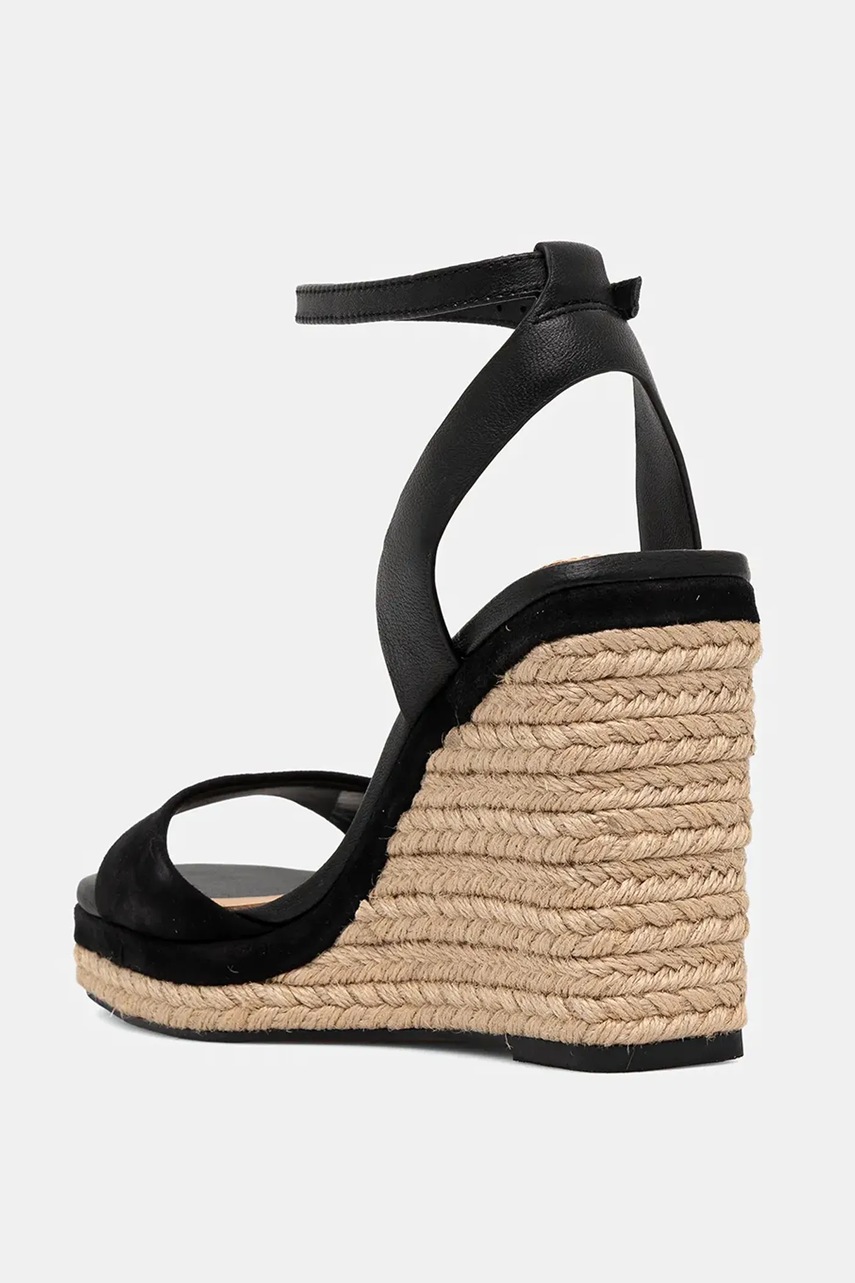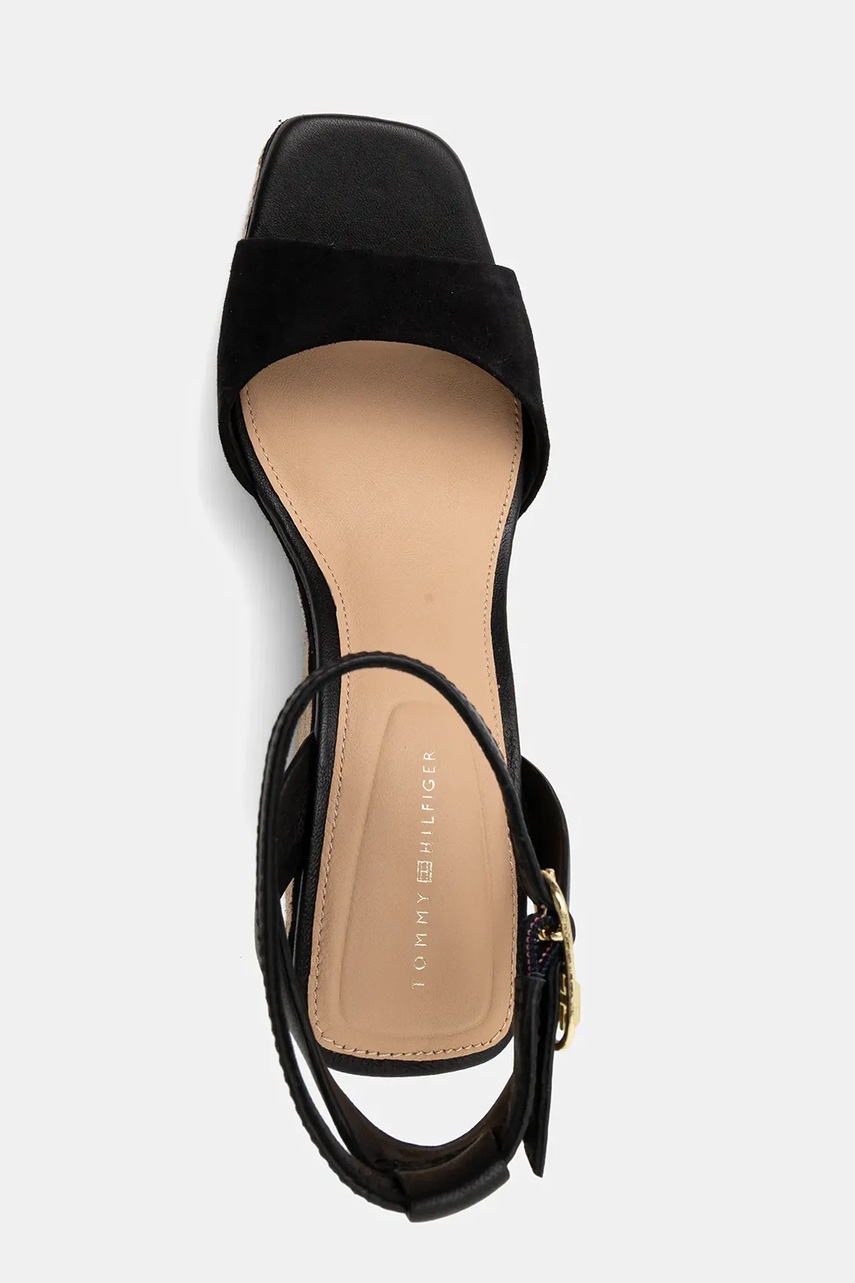 Tommy Hilfiger sandały skórzane LEATHER & SUEDE HIGH WEDGE ESPAD kolor czarny FW0FW08803