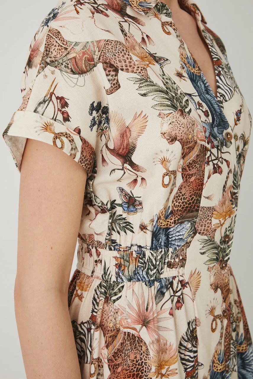 - Wzór z motywem roślinnym i zwierzęcym.