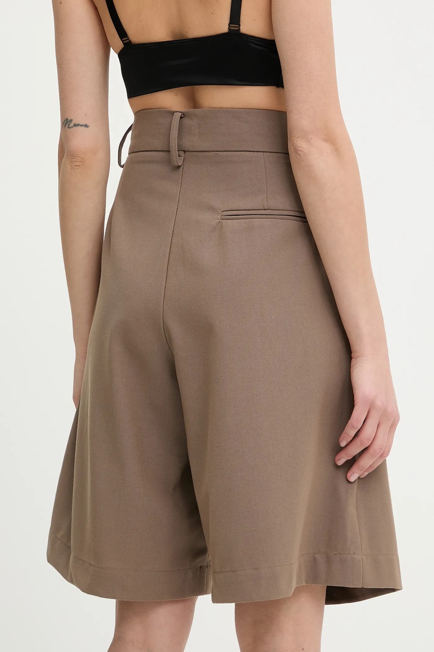Answear.LAB szorty z domieszką wełny damskie kolor brązowy gładkie high waist